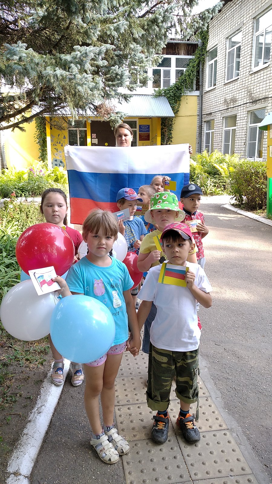 22 августа в ДОУ отмечался День Государственного флага. В этот день была проведена социальная акция "Да здравствует Российский флаг!" Дошкольники вышли на улицы города, поздравляли жителей с праздником и дарили им самодельные открытки с изображением российского флага.